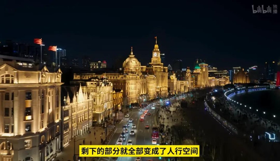 而外滩由原来的12车道又回到了4车道,剩下的部分就全部变成了人行空间。