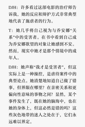 先说缺点:影片的对白和独白过于饱满,几乎带着小说改编的质感。导致我在读字幕和看画面之间不停切换,观影稍显吃力。这个是我觉得唯一的缺点😆 电影主线是一段17岁女孩的暗恋故事。我最喜欢的场景设计是“织毛衣”——作为情愫发展的隐喻,它既可以充满母性,也能带着暧昧。两个年龄差距明显的女性一起织毛衣:你可以理解为她们在分享亲密,也可以理解为只是一场专注的手工。老师是否真的回应了女孩的情感?还是女孩的自我投射?这种暧昧与不确定性,恰恰构成了影片最迷人的张力。 影片里还有一条让我印象深刻的副线:三代女性因女孩的单恋日记而展开的对话: 让我同样印象深刻的,是三代女性围绕女孩的“单恋日记”展开的对话: 外婆感慨:“她的爱真诚而炽热,我好羡慕。” 妈妈的第一反应是担忧:“女儿是不是遭遇了侵犯?”随后又转向欣赏:“她写得太好了,应该出版。” 女孩:“我不代表任何群体,只代表我自己。” 三代女性的反应,恰如三种不同层次的女性主义观:外婆遗憾觉醒太晚,错过了尽情享受人生的机会;妈妈强调事业与价值变现,却被外婆“鄙夷”;而女儿拒绝被定义,捍卫个体经验的独立性。通过这条副线,影片展现了北欧社会对“爱与个体经验”的尊重与包容。 最让我胸闷的一幕,是女孩的手稿交到老师手里后,老师与母亲的对话。老师说: 「那些描写让我非常困惑,太露骨了,明显是她的幻想,但读起来却有种被侵犯的感觉。她描写自己抚摸我手臂时的细节让我直冒冷汗,那算是她在侵犯我吗?」 「可话说回来,迷恋本来就是自我中心的。她沉浸在自己的感受里,而不是真实的我。」 看到这里我一度怀疑:导演是否在暗示一切只是未成年女孩的幻想?直觉和理性告诉我,不该是这样。后来查阅导演采访,我得到了确认。导演谈到:很多治疗师看这个部分都认为—老师的反应是施虐者的典型辩护:把自己伪装成“受害者”,试图操控舆论。她其实清楚自己做错了。